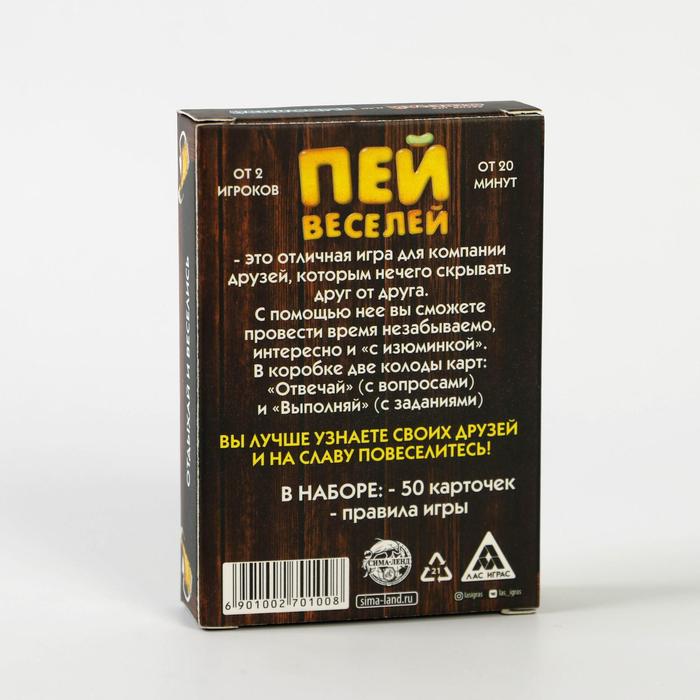 Купить игра для компании "пей веселей" 50 карт от 180 руб. с доставкой до пункта выдачи в Лаишево. Интернет магазин ДекаМаркет. Оплата при получении.
